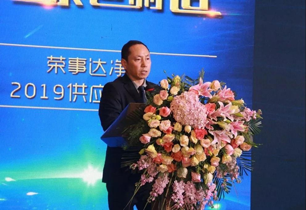 董事長雷鳴首先向與會嘉賓致以熱烈歡迎。雷董講道,榮事達的快速發展離不開廣大供應商的鼎力支持。2018年,榮事達深入貫徹綠色制造,布局十大水處理藍圖,建成凈水科創中心,引進更多智能化生產線,實現了企業架構、科研創新、生產規模、市場運營的突破發展。2019年,榮事達將繼續秉承新時代“工匠精神”理念,為消費者提供更多高品質產品。最后,雷董向在座所有嘉賓提出了新一年的要求,希望大家初心不改,彼此攜手,共鑄產品質量,共融發展信心,共創美好未來。