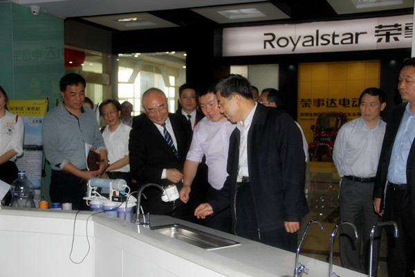 在榮事達智能家電研發中心產品展示廳,馬建堂一行對榮事達水工業公司主打的凈水設備表現出極大的興趣,對榮事達突破創新、堅持走產學研相結合的道路以及多年來在凈水行業內取得的成果、地位給予充分肯定。