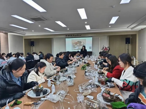 在DIY過程中,大家互相交流、分享心得,笑聲和談話聲此起彼伏。有的女神選擇了簡約風格,將多肉植物種植在小巧精致的花盆里,展現出一種清新脫俗的美;有的則選擇了色彩豐富的搭配,將不同顏色的多肉組合在一起,創造出一幅幅生動的畫面。