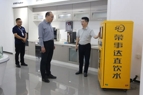 沉浸式參觀,智能凈水工廠實力盡顯 領導一行參觀了榮事達智慧水世界展廳,聽取了集團的發展歷程以及令人矚目的成就,全面了解了社區智慧飲水系統、校園直飲水系統、全屋智慧凈水系統等榮事達十大水處理系統,領導們對公司的綜合實力給予了高度評價與認可。