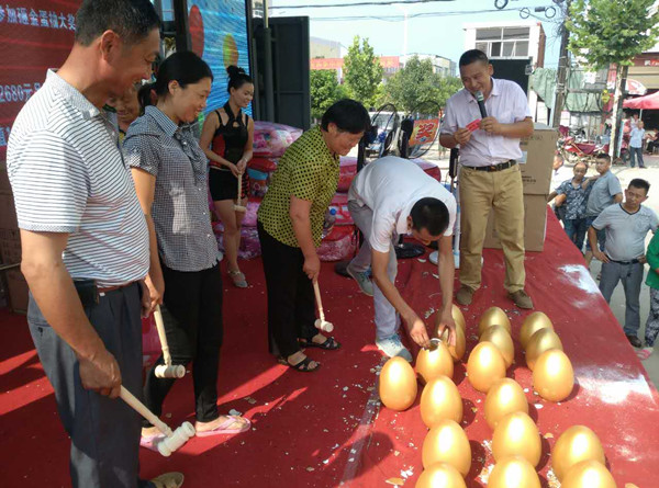 活動現場,舞臺的搭建和多彩的文藝表演吸引了眾多路人駐足觀看,多個活動環節讓前來購機的消費者絡繹不絕,一頂頂帳篷下擺放的中國風系列等熱銷產品被爭相搶購,現場好不熱鬧。此次活動力度空前,消費者購買產品不僅可以享受超值折扣,還能參與砸金蛋抽獎環節,品牌抽油煙機、熱水器、電風扇、空調被等大獎應有盡有,許多中獎者喜悅之情溢于言表,更有甚者放煙火慶祝。