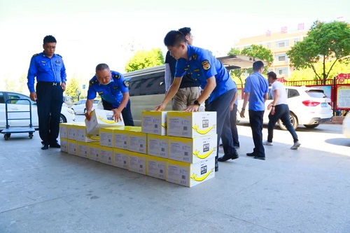 8月12日上午,榮事達水工業集團為雙鳳城市管理行政執法中隊送去一批蘇打水,向堅守在城市管理一線的工作者們表達敬意。
